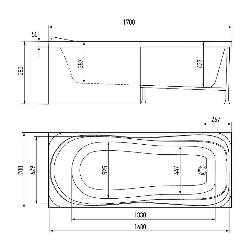 Глубина ванны: 42,7 см.