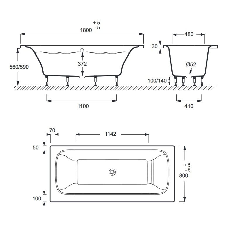 Смягченные углы с внутренней стороны чаши ванны облегчают уход.ELITE Акриловая ванна, слив в центреРАЗМЕРЫ :180 x 80 x 44,50 см