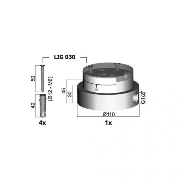 База для установки напольного смесителя Paffoni Light LIG030.Комплектация: