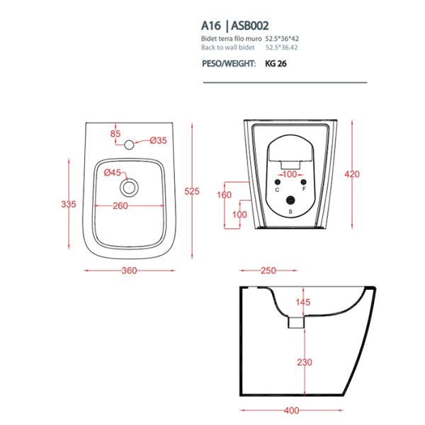 Биде Artceram A16 ASB002 39 00 cocoaArtceram A16 Биде напольное 36х52 см, 1 отверстие, цвет cocoa