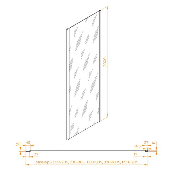 Комплектуется с моделями высотой 2000 мм и цветом профиля «хром». Подходит к моделям SV-02 / SV-03