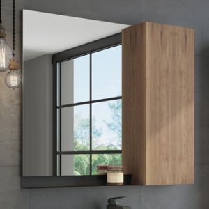 Створка оснащена петлями с механизмом плавного закрывания. Высококачественное зеркальное полотно с амальгамой на основе серебра. Фасад и корпус из влагостойкого ЛДСП Дуб темный. За створкой одна горизонтальная полка. Под зеркалом расположена металлическая полочка для размещения предметов для умывания. Зеркало и мебельный элемент два отдельных изделия, поэтому могут быть подвешены, как в правом так и в левом варианте.