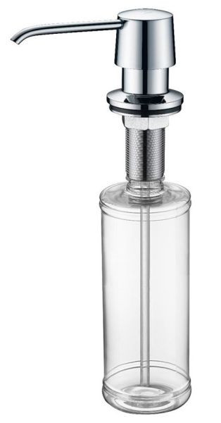 Дозатор для кухни и ванной, артикул D001-CRДозатор для кухни или ванной, встраиваемый, объемом 350 мл, матовая поверхность, изготовлен из латуни и пластика.