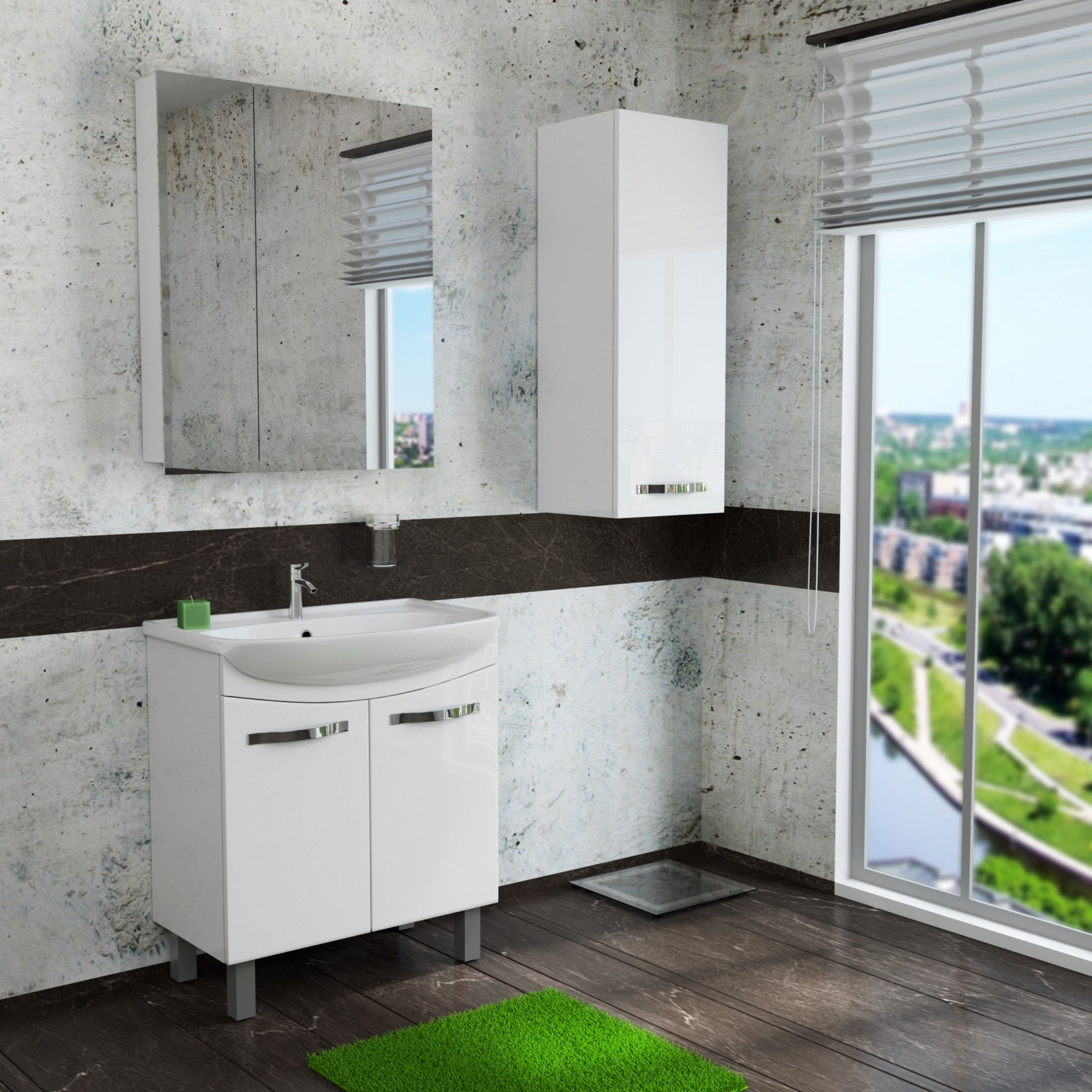 Строгий минимализм, лаконичный дизайн, глянцевая поверхность фасада, идеальное качество покраски. В комплект можно подобрать зеркальные шкафы, пенал, полупенал.