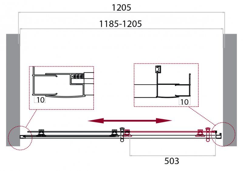 Регулировка ширины: предусмотрена за счет боковых профилей