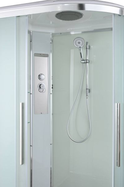 Стильная душевая кабина AvaCan EM2811L сочетает в себе высокую функциональность, практичность и надежность. При изготовлении применяется безопасное закаленное стекло толщиной 5 мм (матовое), надежно фиксируемое алюминиевым профилем. Сборка без силикона (увеличивает срок службы), внутренняя сборка(облегчает установку и ревизию; позволяет установить в ограниченном пространстве), смеситель резьбовой (без хомутов). Съемный экран поддона (позволяет осуществлять ревизию сифона). Цвет профиля хром. Двойные металлические ролики дверей (увеличивают срок службы).В комплекте : душевая штанга, две полочки , тропический (верхний) душ, арома-лейка с витамином С (картридж съемный),полимерная вставка в поддон(имитация дерева),сифон, ручки дверей из нержавейки , двойные ролики .