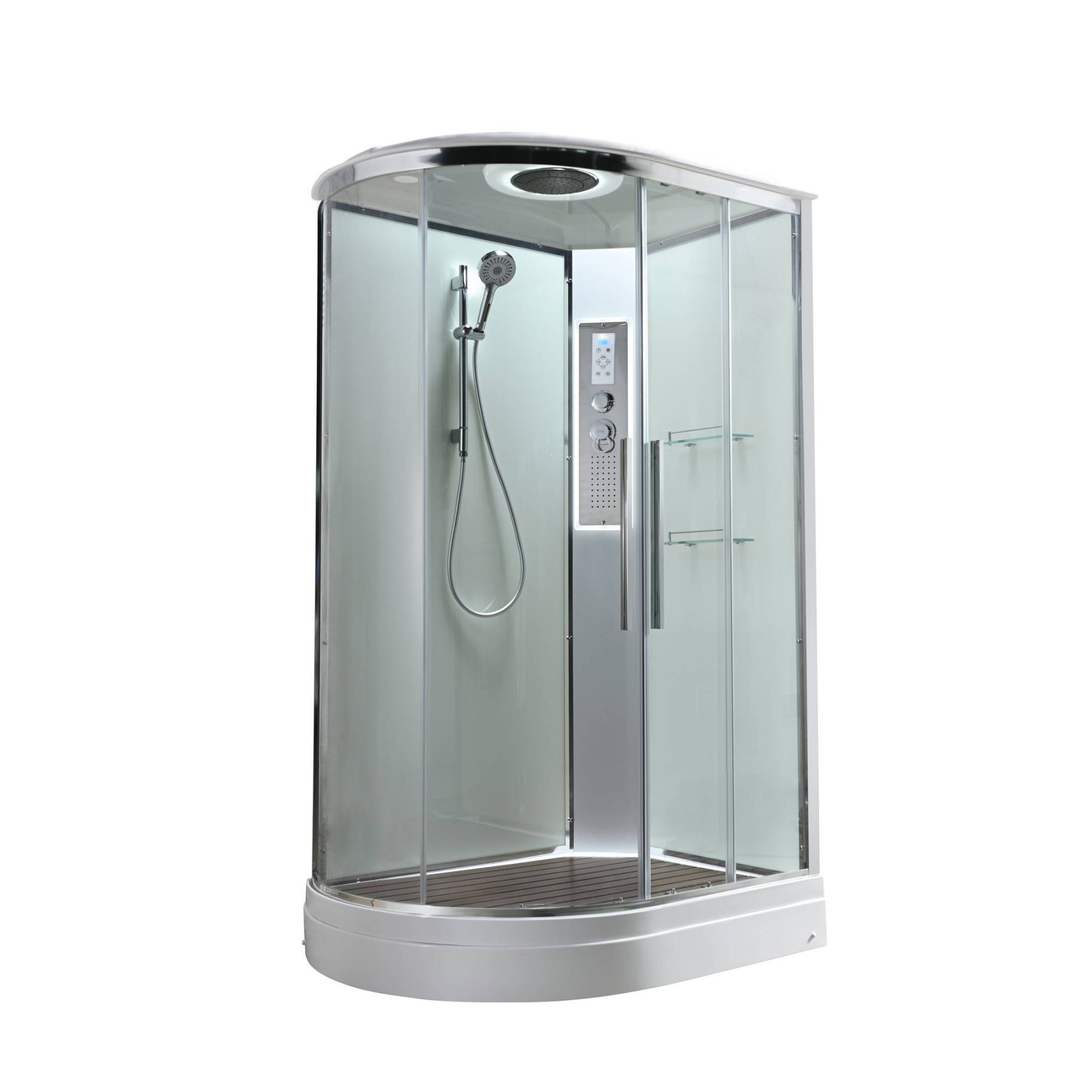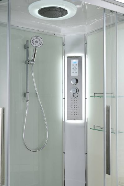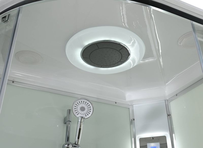 Стильная душевая кабина AvaCan EM2812RLEDT сочетает в себе высокую функциональность, практичность и надежность. При изготовлении применяется безопасное закаленное стекло толщиной 5 мм (прозрачное), надежно фиксируемое алюминиевым профилем. Сборка без силикона (увеличивает срок службы), внутренняя сборка(облегчает установку и ревизию; позволяет установить в ограниченном пространстве), смеситель резьбовой (без хомутов). Съемный экран поддона (позволяет осуществлять ревизию сифона). Цвет профиля  хром. Двойные металлические ролики дверей (увеличивают срок службы).В комплекте : душевая штанга, две полочки , тропический (верхний) душ, арома-лейка с витамином С (картридж съемный),полимерная вставка в поддон(имитация дерева),сифон, ручки дверей из нержавейки , двойные ролики ,пульт сенсорный(Блютуз ,LED подсветка ,радио ,вытяжка),гидромассаж спины.