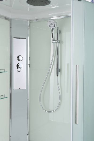 Стильная душевая кабина AvaCan сочетает в себе высокую функциональность, практичность и надежность. При изготовлении применяется безопасное закаленное стекло, надежно фиксируемое алюминиевым профилем. Профиль сделан из алюминия повышенной прочности. Сборка без силикона (увеличивает срок службы, защищает от протечек), внутренняя сборка (облегчает установку и ревизию; позволяет установить в ограниченном пространстве и обойтись без демонтажа других сантехнических приборов), смеситель резьбовой (без хомутов). Съемный экран поддона (позволяет осуществлять подключение и ревизию сифона).Двойные металлические ролики дверей (распределение нагрузки на два ролика, увеличивают срок службы). Душевая штанга(позволяет регулировать по высоте ручную лейку), ручная арома-лейка с витамином С (картридж в комплекте,есть возможность замены или удаления картриджа), полочки(из стекла, с ограничителем), сифон с гидрозатвором.