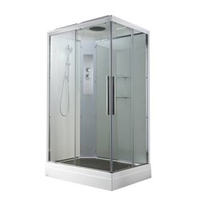 Стильная душевая кабина AvaCan сочетает в себе высокую функциональность, практичность и надежность. При изготовлении применяется безопасное закаленное стекло, надежно фиксируемое алюминиевым профилем. Профиль сделан из алюминия повышенной прочности. Сборка без силикона (увеличивает срок службы, защищает от протечек), внутренняя сборка (облегчает установку и ревизию; позволяет установить в ограниченном пространстве и обойтись без демонтажа других сантехнических приборов), смеситель резьбовой (без хомутов). Съемный экран поддона (позволяет осуществлять подключение и ревизию сифона).Двойные металлические ролики дверей (распределение нагрузки на два ролика, увеличивают срок службы). Душевая штанга(позволяет регулировать по высоте ручную лейку), ручная арома-лейка с витамином С (картридж в комплекте,есть возможность замены или удаления картриджа), полочки(из стекла, с ограничителем), сифон с гидрозатвором.