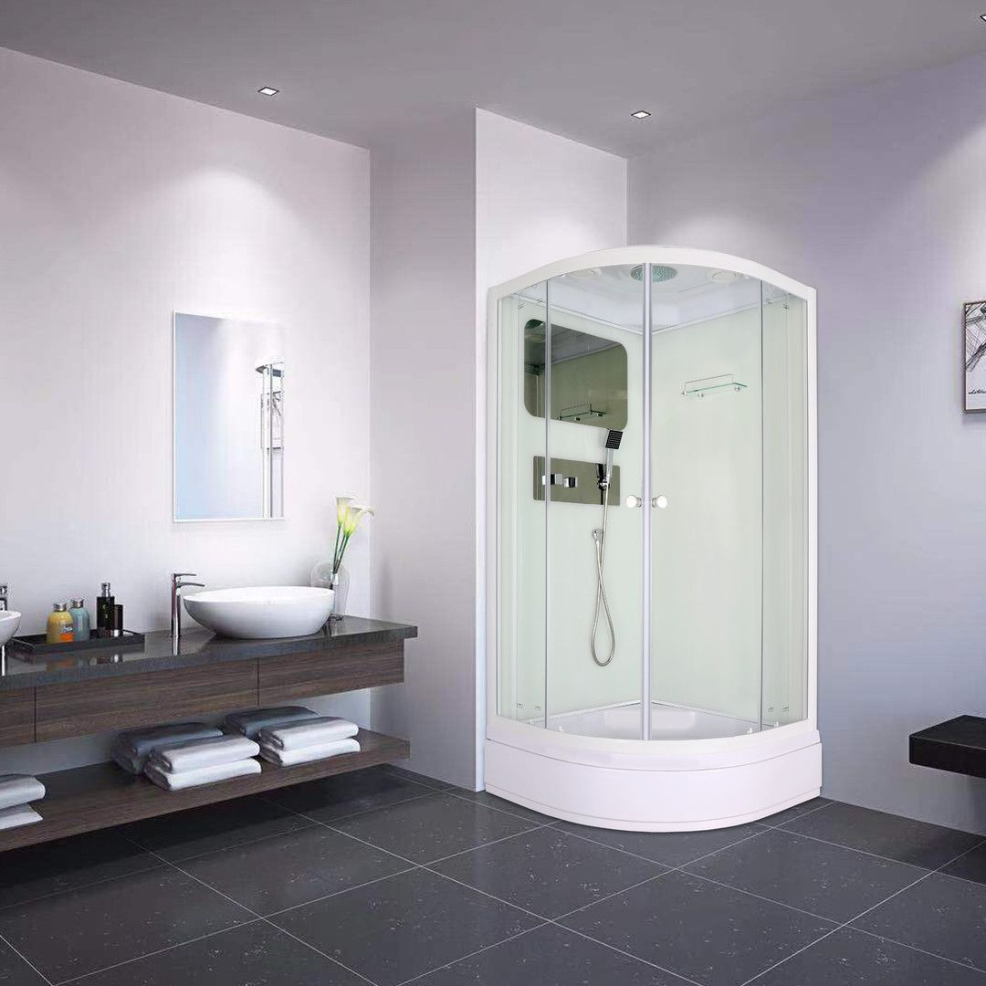 БЕЗСИЛИКОНОВАЯ СБОРКАДушевая кабина Parly BMM86Размер: 85х85х215 смКомпактная светлая кабина экономит место в ванной и визуально увеличивает пространство. Отсутствие центрального столба позволило увеличить внутреннюю площадь душевой зоны.Достоинства:Прозрачное закаленное стекло, 4 мм. Полотно устойчиво к случайным ударам. В случае битья рассыпается на мелкие грани с тупыми концами.Стенки из закаленного белого стекла, 4 мм.Профиль: белый, алюминиевый. Не подвержен коррозии.Поддон: средний 26 см, полукруглый. Высота поддона предупреждает разбрызгивание воды и позволяет замачивать вещи.Сборка без применения силикона. Конструкция душевой кабины обеспечивает слив воды внутрь поддона. Сам поддон по всему периметру оснащен водонепроницаемым бортиком высотой 2 см, который исключает перелив воды за пределы душевой зоны.Комплектация: полка, большое встроенное зеркало, верхний душ ТРОПИК, ручной душ, сифон Внимание! Производитель оставляет за собой право вносить изменения в конструкцию и комплектацию моделей без предварительного уведомления!