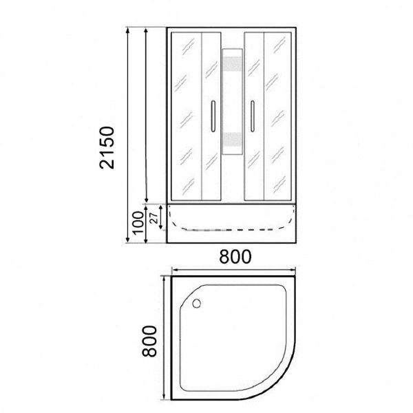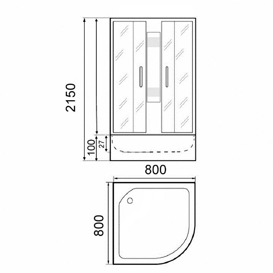 Душевая кабина F811 бренда PARLY (код 9202)Размер: 80х80х210 см, высота поддона 10 смПоддон и крыша белые из ABS-пластика