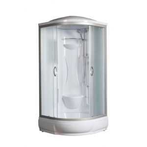 ~ крыша ~ верхний душ ~ вентиляц. отв-я (2шт) ~ штанга ~ зеркало ~ сиденье ~ ручной душ. 3-х позиц. ~ смеситель с переключ. режим. ~ полочки (2 шт) ~ поддон п/кр низ.со/съемн экр.(Н=26см) ~ сифон