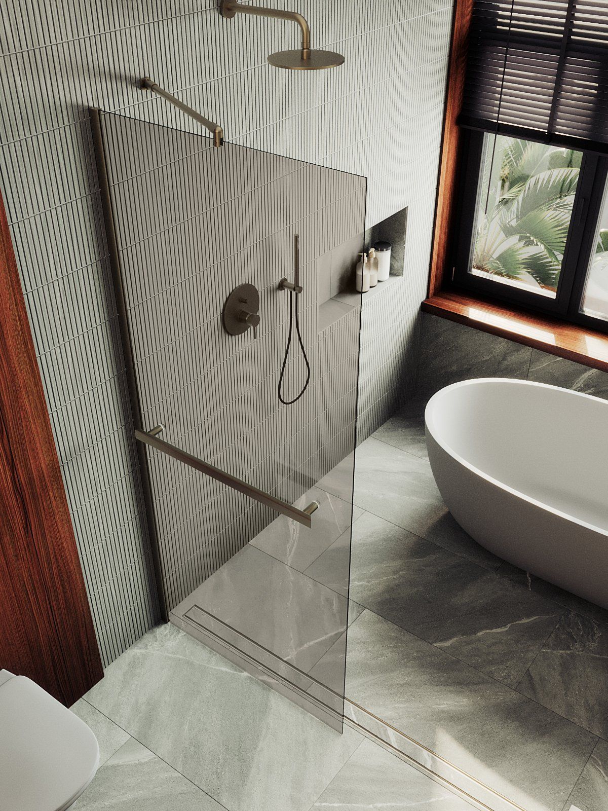 Душевая перегородка в профиле с полотенцесушителем представляет собой компактное и функциональное решение для разделения пространства в ванной комнате . Она изготовлена из закаленного стекла,анодированного алюминиевого профиля, что обеспечивает прочность и долговечность конструкции. Закаленное стекло , цвет бронза , толщина 8 мм , 1950*790-1 шт.