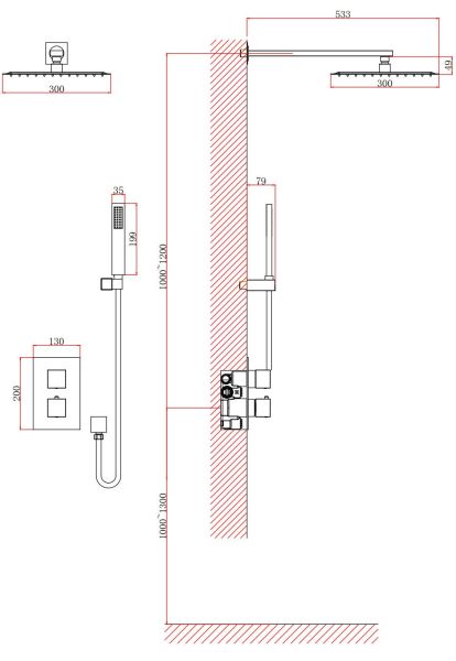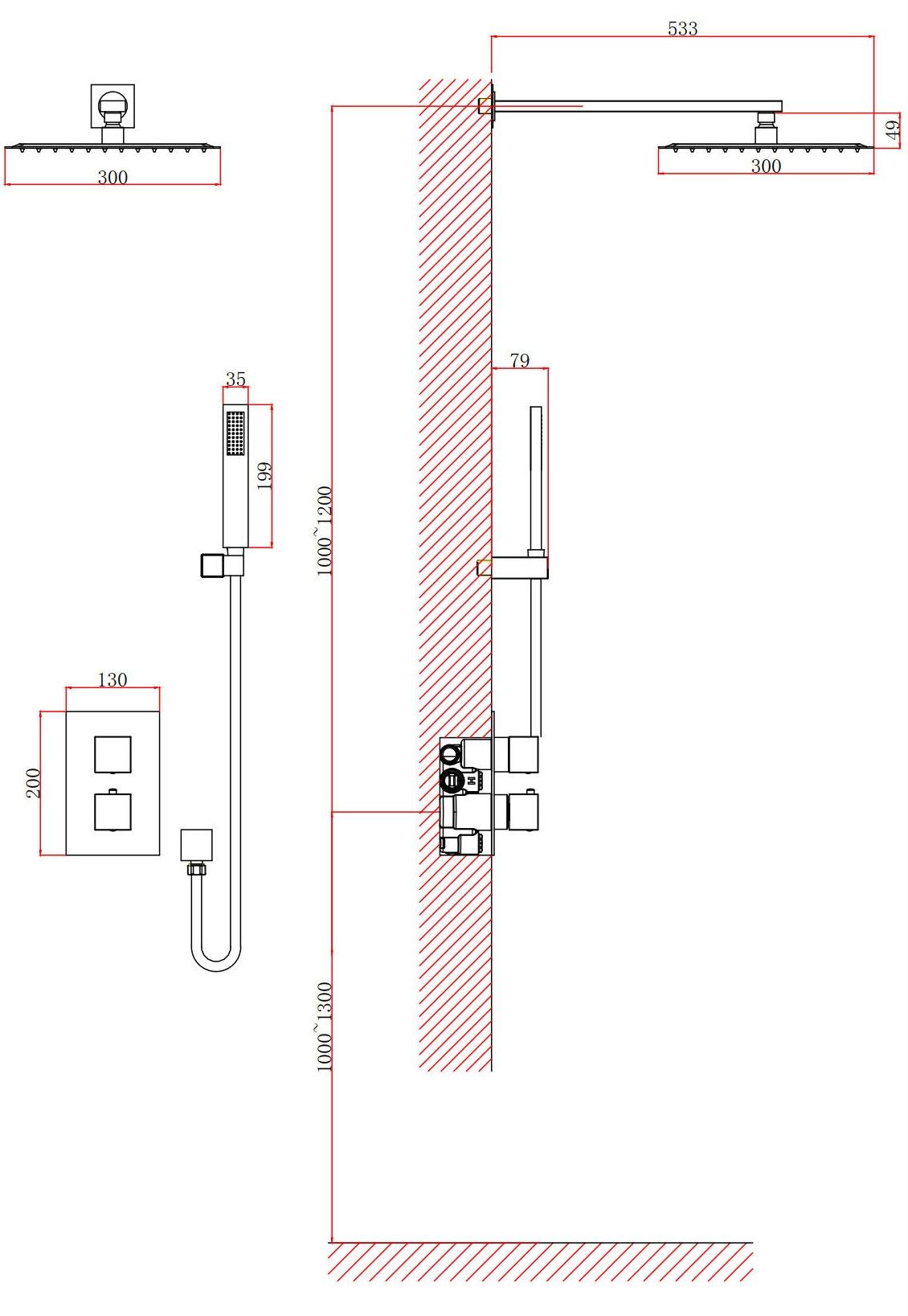 - Размер верхнего душа, см:30