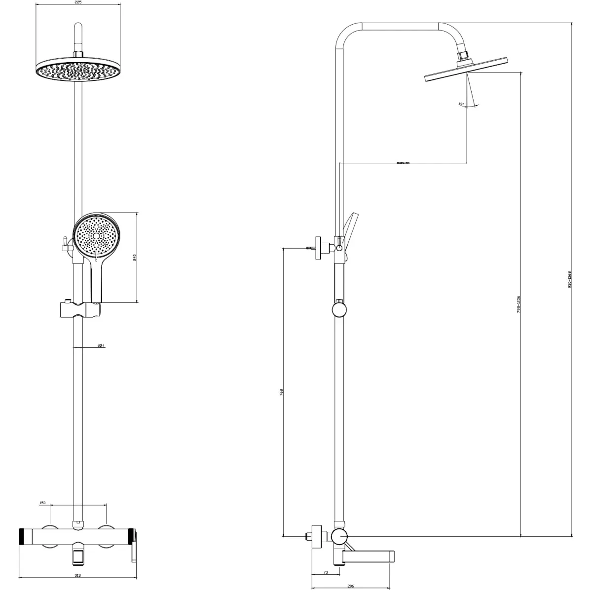 - Размер верхнего душа, см:22.5