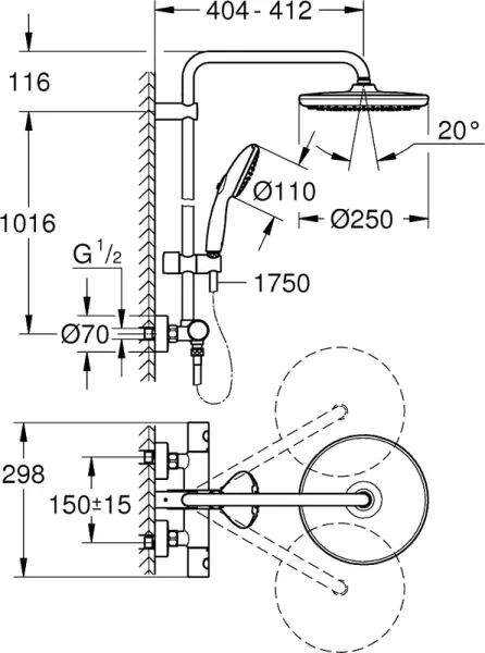 Вылет верхнего душа: 41.2 см