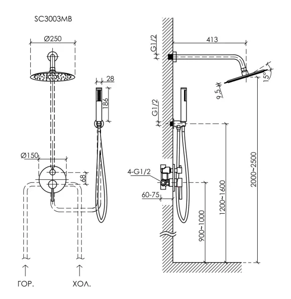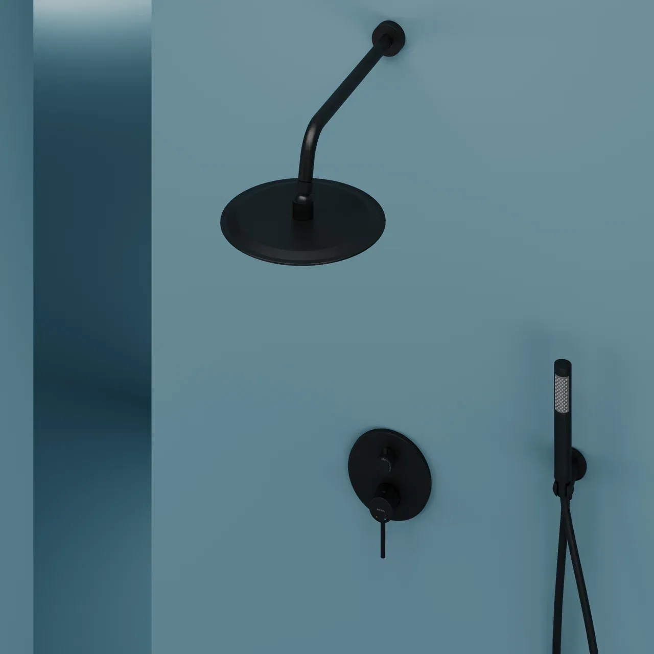 Душевой комплект SANCOS Select встраиваемый для душа, с внутренней частью, верхним, ручным душем и шлангом в комплекте, цвет черный матовый, арт. SC3003MB