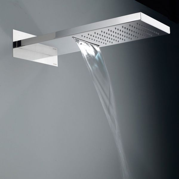 Душевая система скрытого монтажа, с термостатом с прямоугольной лейкой в стиле модернДушевая система сделана из латуни класса А