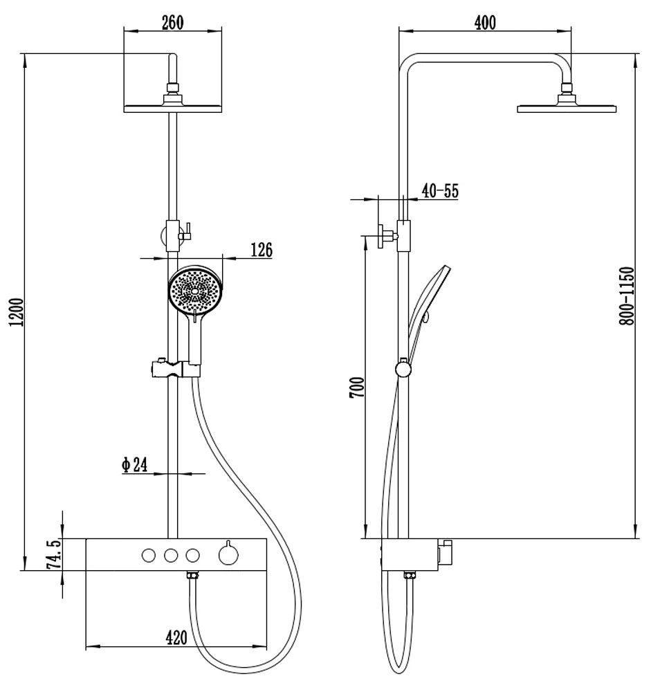 состоит из: верхний душ, ручной душ, смеситель для ванны, штанга для душа, держатель для душа; верхний душ 260 1jet; размер душевого диска: 260 мм, тип струи: Rain; душевая лейка 126 мм, 3 режима струи; каскадный излив; шарнирное соединение: регулируемый угол верхнего душа;длина держателя для душа: 400 мм;держатель для ручного душа регулируемый по высоте; поворотный держатель для душа; вид монтажа: внешний монтаж; соединительная резьба G ½; межосевое подключение 150 мм ± 12 мм; телескопическая штанга; подъемная труба может быть укорочена по высоте 100-450 мм; шланг 1500 мм; 2 года гарантии.