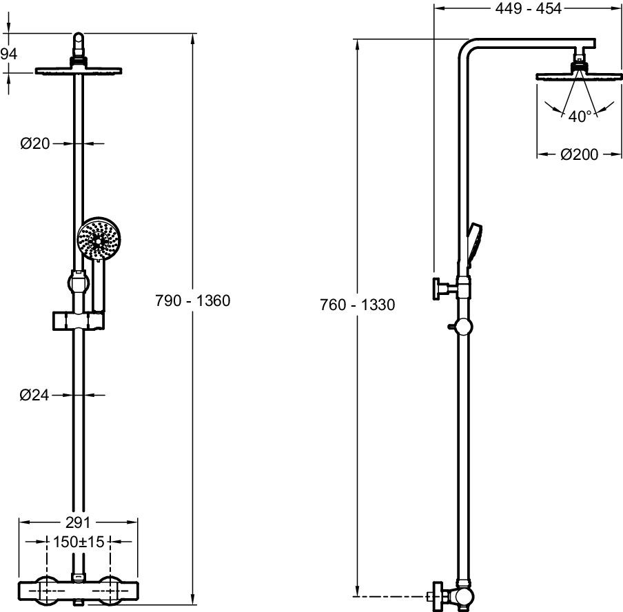 Размер верхнего душа Ø 200мм и ручного душа Ø 100мм для комфортного покрытия