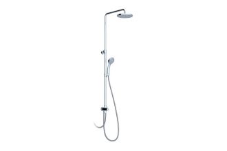DS 090.00 Позволяет пользователю с любым ростом мгновенно подстроить высоту лейки под свои предпочтения а также с легкостью отрегулировать высоту верхнего душа и угол его наклона. Делается все это легко и просто одним движением руки.