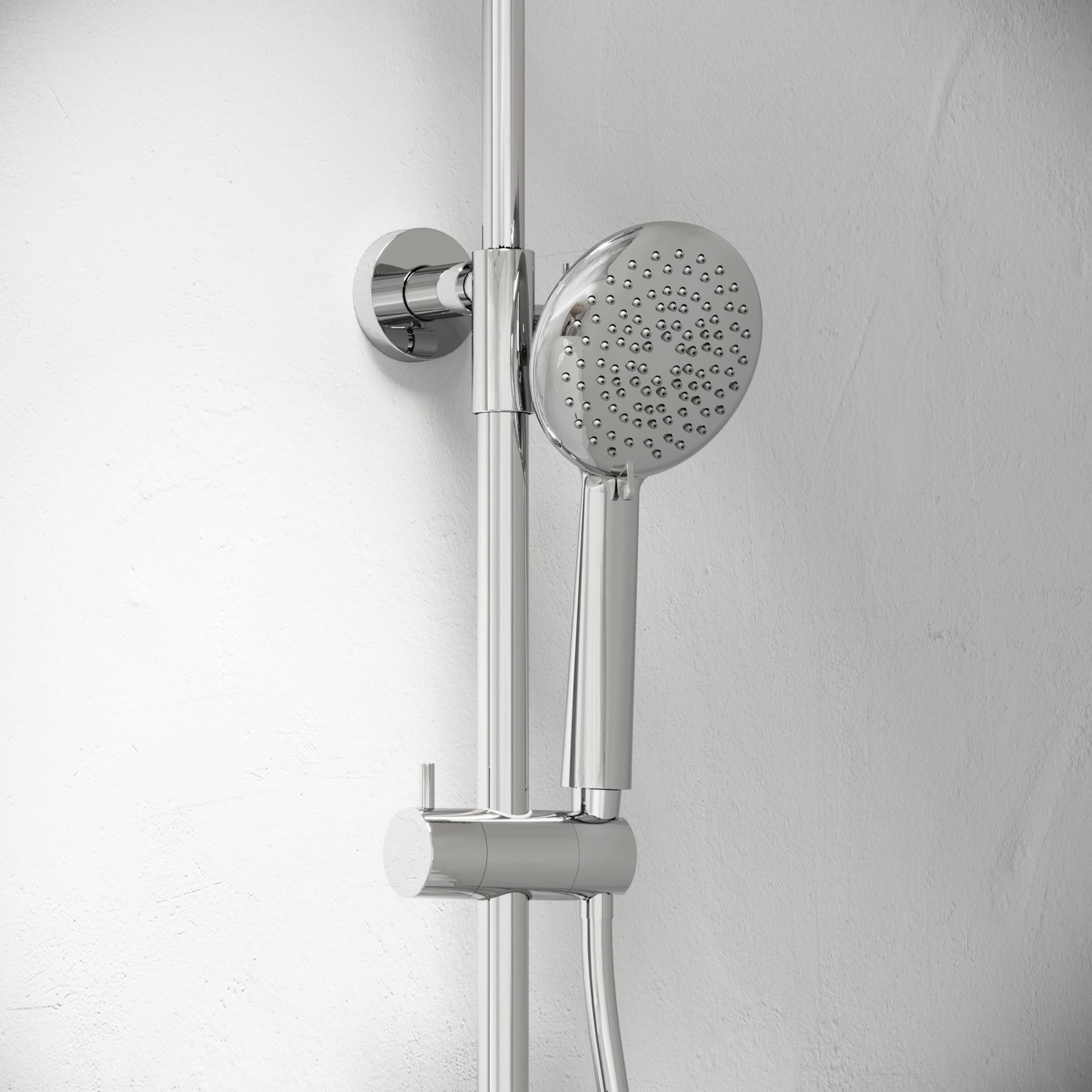 Встроенный дивертер для переключения между верхним и ручным душем - Возможность регулировки высоты и наклона ручного душа