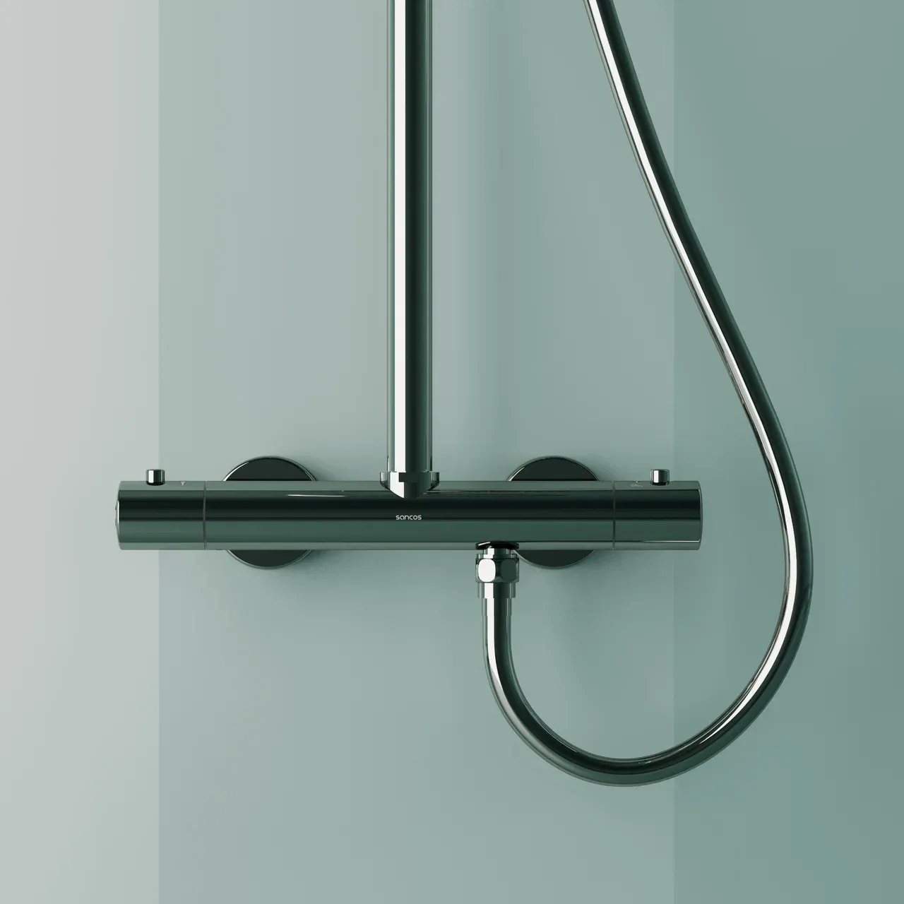 Душевая стойка SANCOS Game для душа с термостатическим смесителем, верхним, ручным душем и шлангом в комплекте, цвет хром, арт. SC3002CH