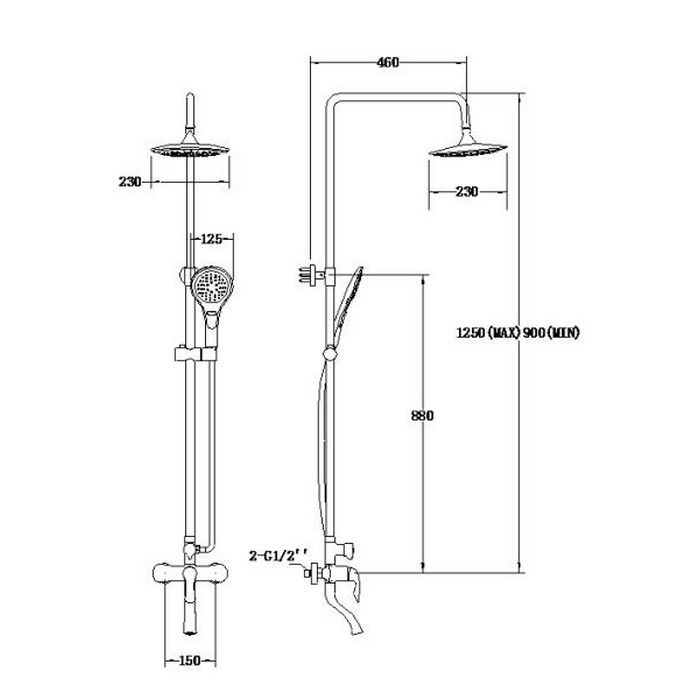 Душевой гарнитур нержавеющая сталь, латунный смеситель, верхний и ручной душ,Без излива. Система анти-кальций.