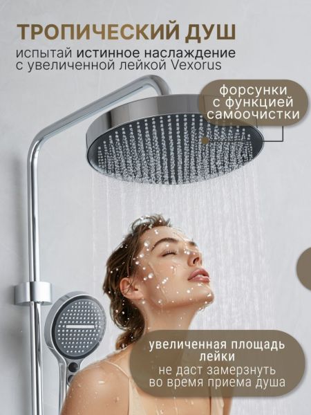 Душевая система с краном бренда Vexorus - это идеальный выбор для тех, кто ценит качество, стиль и комфорт. Представленное оборудование является надежным и долговечным, что позволяет использовать его на протяжении многих лет.