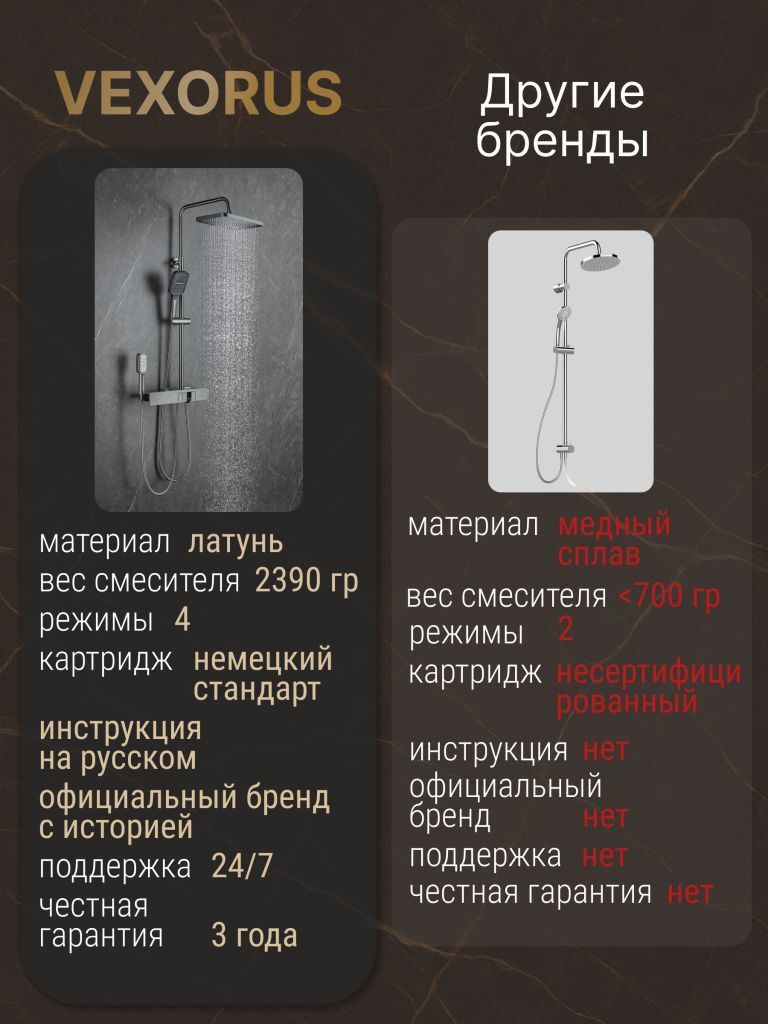 Душевая система с краном бренда Vexorus - это идеальный выбор для тех, кто ценит качество, стиль и комфорт. Представленное оборудование является надежным и долговечным, что позволяет использовать его на протяжении многих лет.