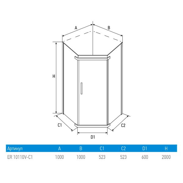 Душевой уголок Erlit Comfort ER10110V-C1 (1000x1000x2000)