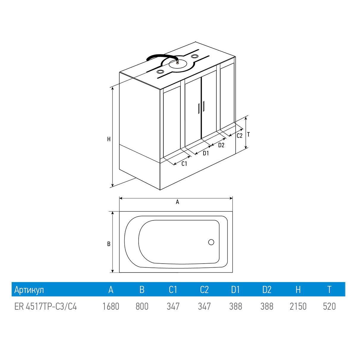 Душевой бокс Erlit Comfort ER4517TP-C4-RUS (1680x800x2150)