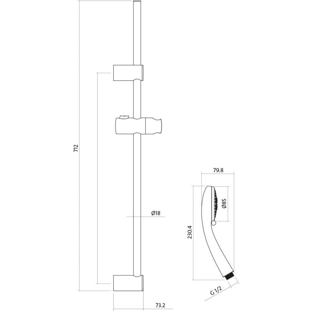 • Размер ручного душа, см: