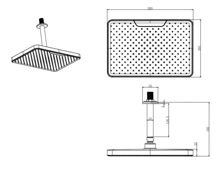 • Верхний душ потолочный