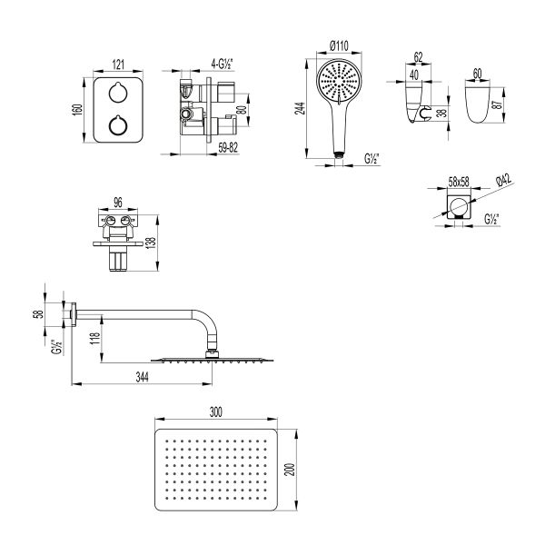 • Верхняя поворотная душевая лейка «Тропический дождь» 200х300 мм