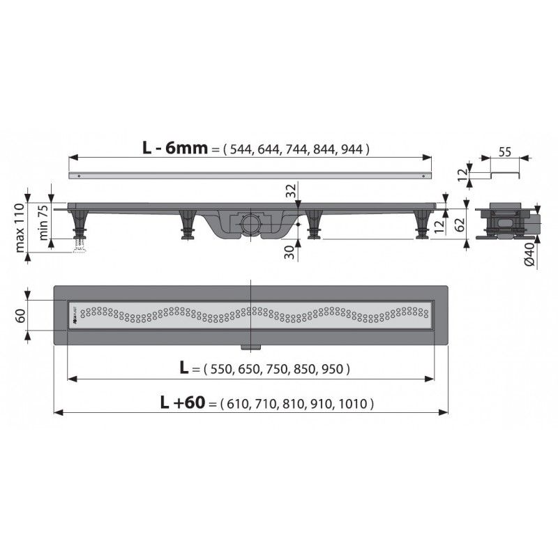 • Диаметр сливной трубы 40 мм