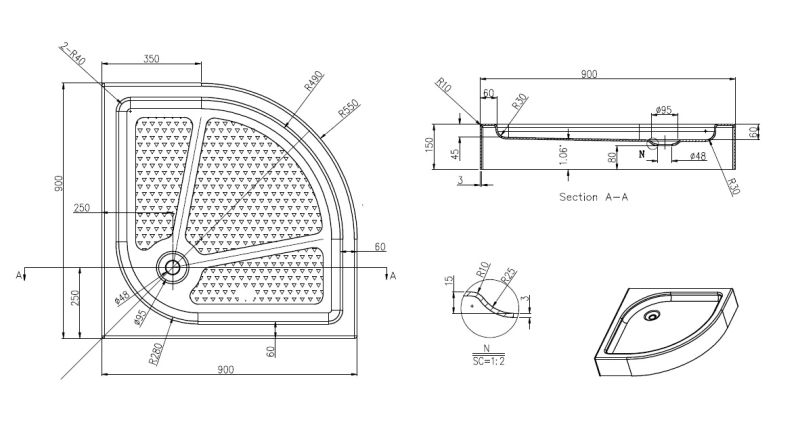 Душевой поддон Azario EDMONTON P29 R/L