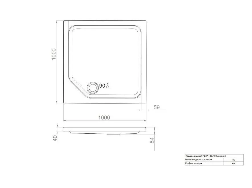 - Высота поддона 170мм