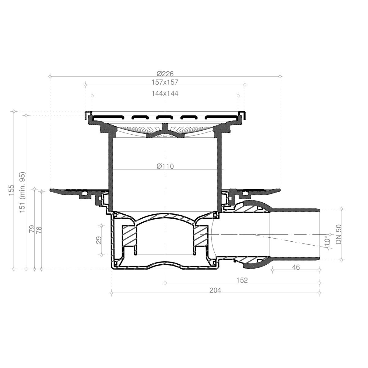 - Решетка: металл с перфорацией "Хром глянец". - Базы: 1 - с 1 выходом, 4- S-образный сифон.- Материалы: решетка - нержавеющая сталь AISI 304 SS, корпус, сифон - PP. - Размеры решетки 100х100 мм и 150х150 мм,- пропускная способность 48 л/мин, D=50 мм, - поворот базы 360°, - минимальная высота монтажа - 78 мм (для базы 2,3), 69 мм (для базы VERTICAL), - гидрозатвор. 10х10 - комбинированный затвор - 15х15 - гидрозатвор Mask - с рамкой