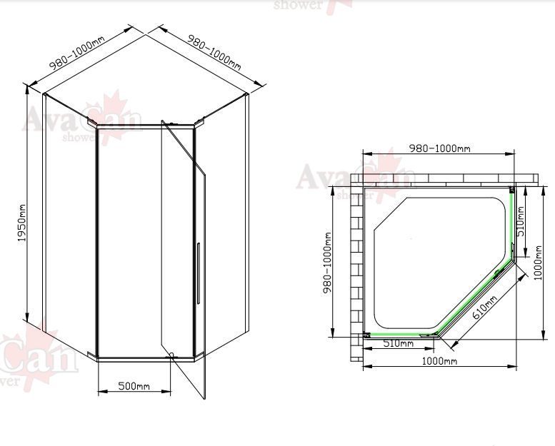 - Душевой уголок AvaCan PB 100 Black размер 980-1000-195