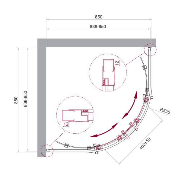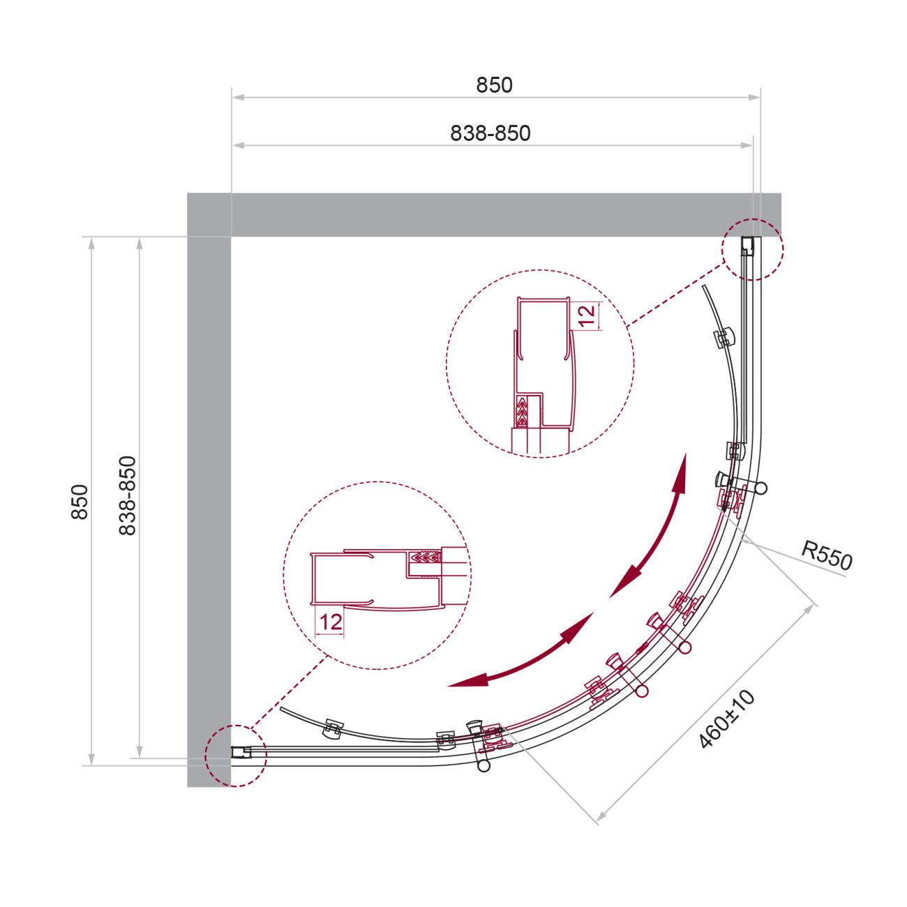 Характеристики Размеры : 850×1950×850 мм. Цвет профиля : хром Материал проф... Подробнее