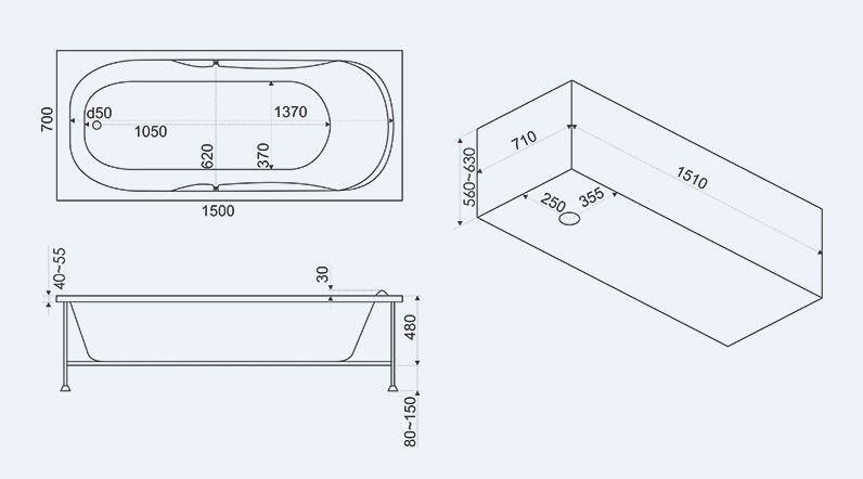 Фронтальная панель для ванны Bas Ибица Standart 150