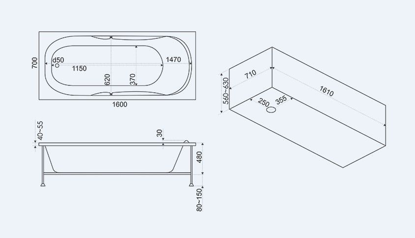 Фронтальная панель для ванны Bas Мальдива Standart 160
