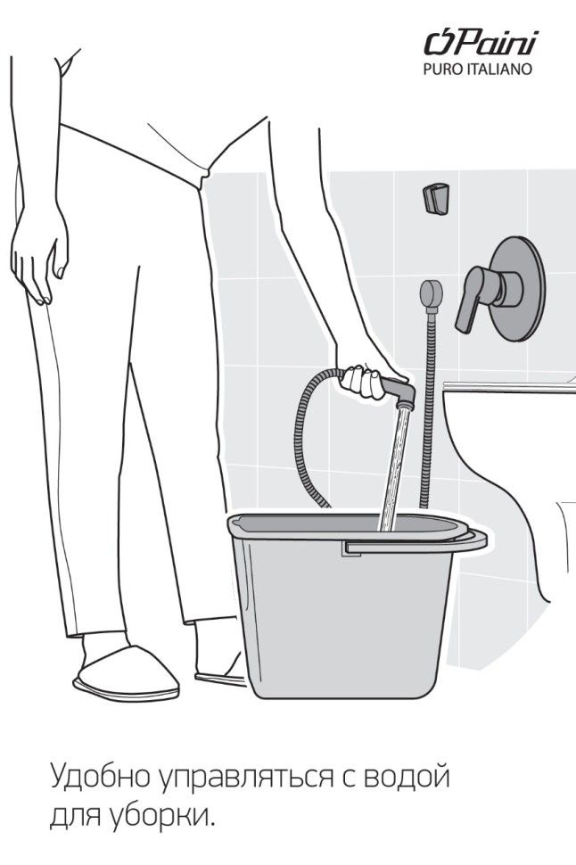 • С помощью гигиенического душа очень легко ополоснуть подошву обуви, горшок ребенка, лоток для животного.