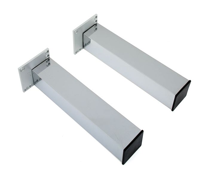 Ножки для мебели Aquanet в комплекте из 2 штук, квадратные на срезе, 50 мм в ширину каждая, выполнены изалюминия с хромированным покрытием. Они имеют площадку для крепления к мебели с одной стороны и пластиковую накладку - с другой. Амортизирующая накладка препятствует скольжению и повреждению пола. Высота ножек - 20 см. Комплект предназначен для напольно-подвесной установки мебели, когда предусмотрены крепления к стене, а двумя передними ножками изделие упирается в пол.