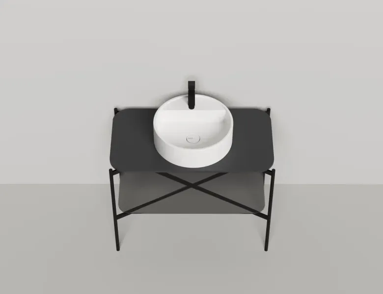 Консоль, предназначенная для установки накладных раковин из ассортимента Salini, изготовлена из металла, выполнена в благородном матовом чёрном цвете.