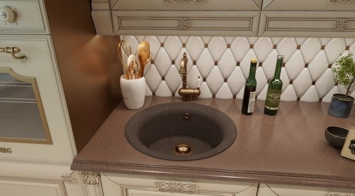 Компактная врезная мойка Florentina Антик, выполнена из композитного материала (искусственный камень).