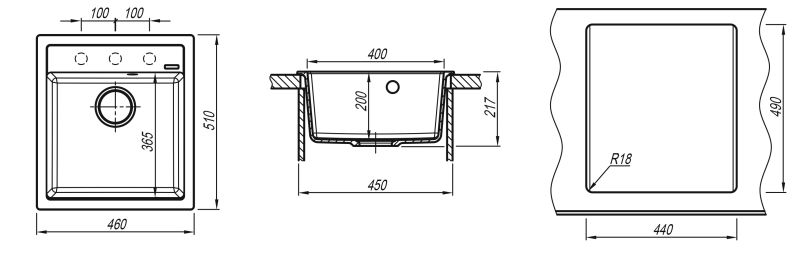 • Отверстия под смеситель: