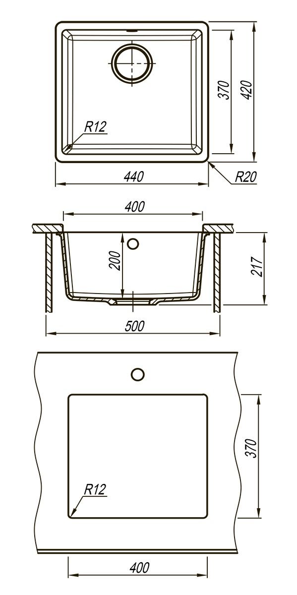 • Глубина чаши: 200 мм