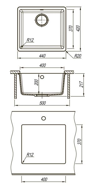 Кухонная мойка Lemark Sinara 440-U 9910067 антрацит